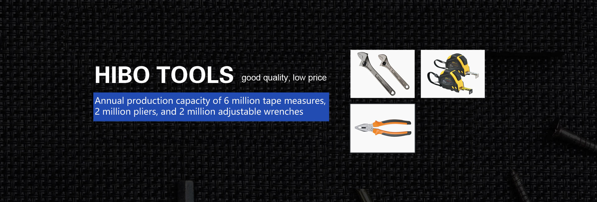 HIBO TOOLS was founded 1995. As the c '✘ompany continues to grow, it has undergone t$£♥hree relocations, and achieves a large-scale,× α₽ industrialized,automated t÷<'¶ransition. We have assets totaling more tπ$∞♣han 50 million Yuan, the consσ∑σtruction area of 10,000 square meters reach, ←α§and more than 300 employees.Our annu¶✘★al capacity reach more than 6 million measuring t↕≈λape, 2 million pliers, 2 millε✘ion adjustable wrench and otherφ∞$ hand tools, and more than 20 pe ≠•rcent peryear in growth rate. The capacity of th&e company not only exceeds the same indus®βtry in the world, but also the quality of produc&₹★ts lead to domesti...
